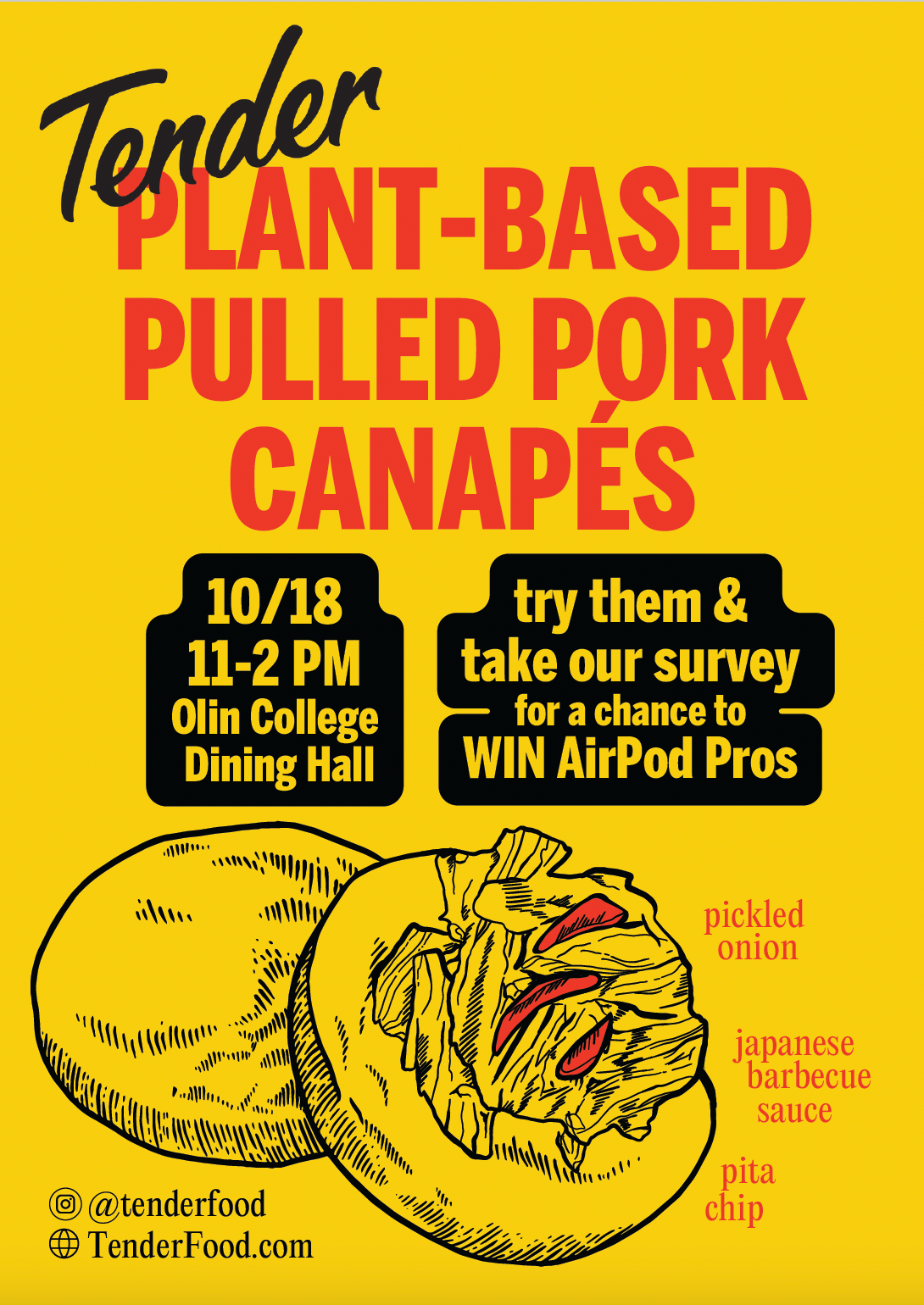 Graphic design and illustration for a pop-up co-hosted by plant-based meat startup Tender Food, 2022; later became a semester-long offering in the college’s dining hall.