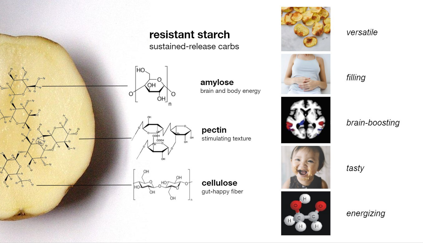 A study of how to combine the dynamic textures of moist, resistant starch of potatoes with the delectable crunch of a chip to achieve ultimate satisfaction in a snack food.
