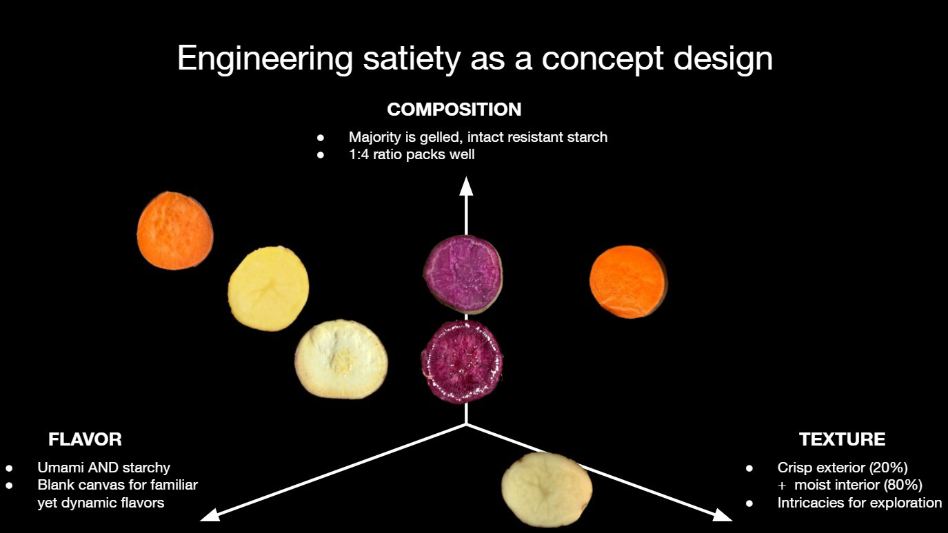 As published in MIT’s architecture archive: “This project showcases a palette of the versatile and beautiful capabilities of the potato. Through creating new compositions, textures, and flavors, we speculate how to engineer satiety in food.”